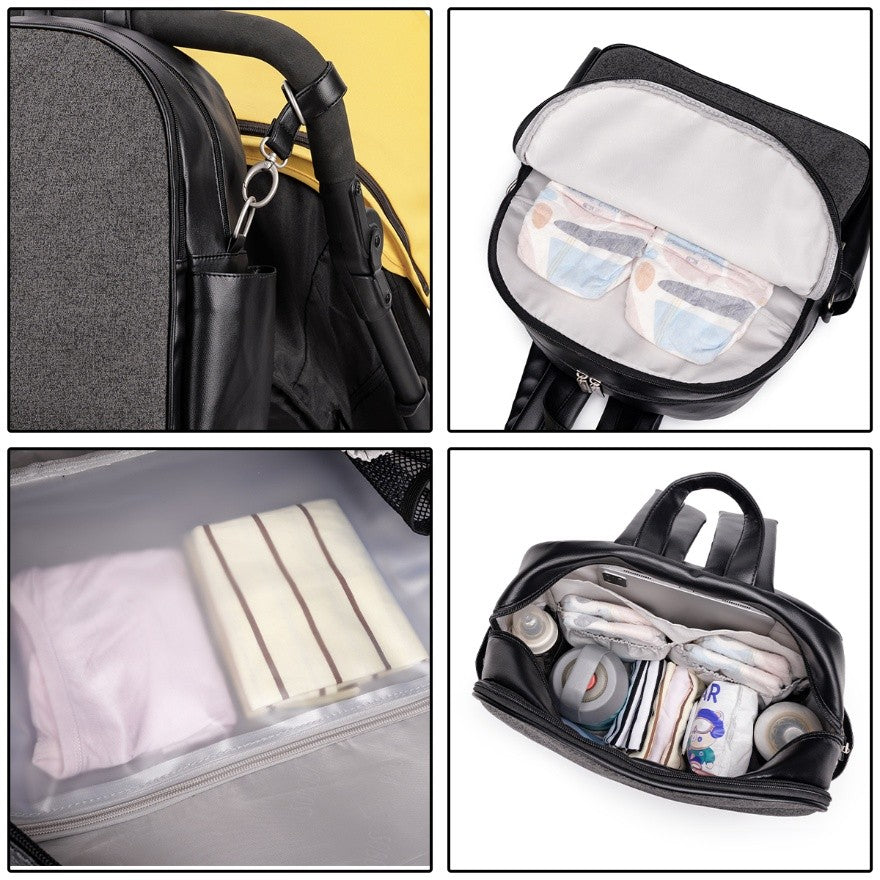 MIST Vegan Leather Diaper Bag Backpack - Black