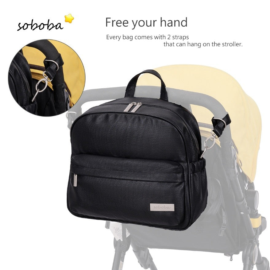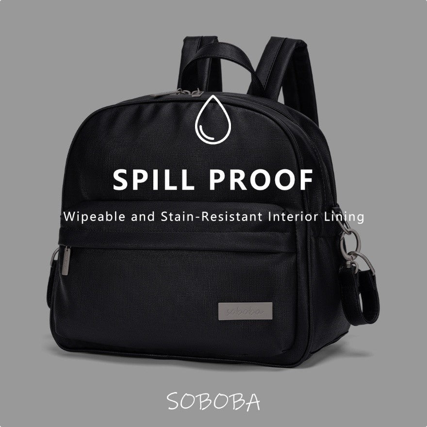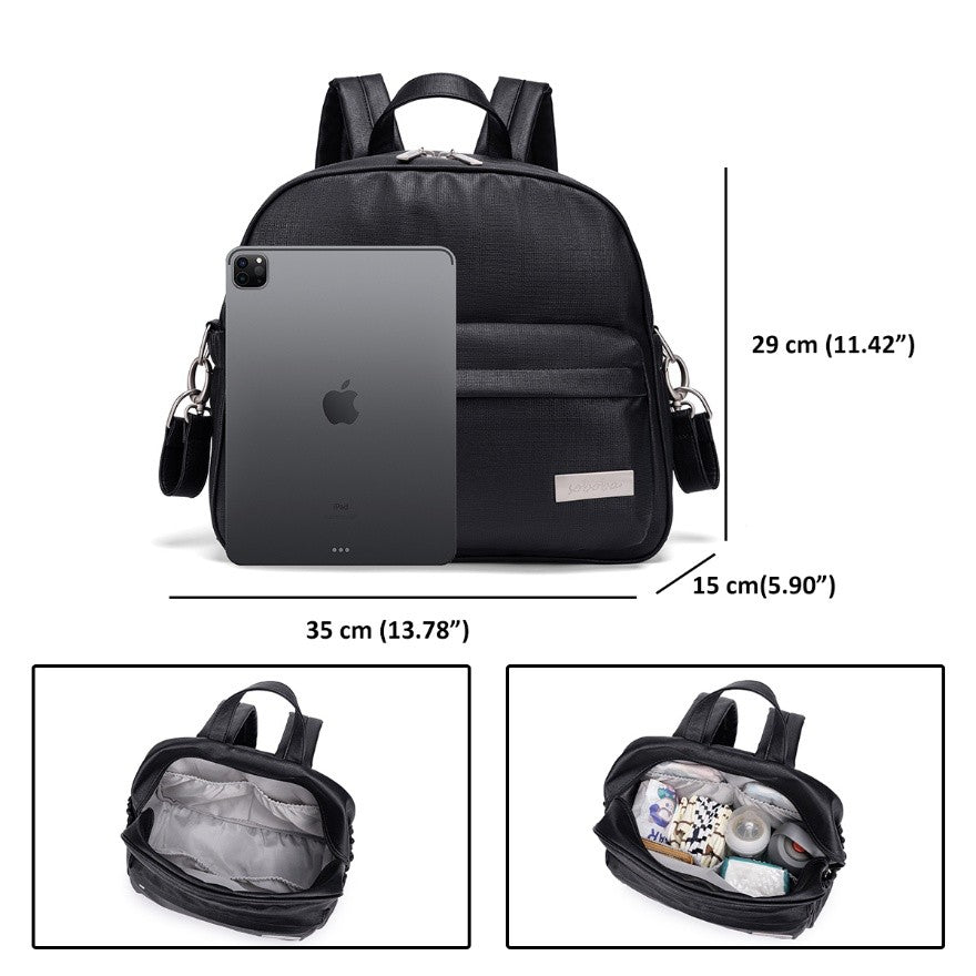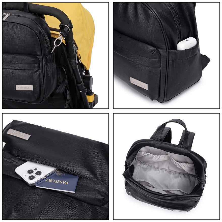 PEBBLE Vegan Leather Diaper Bag Backpack in Texture Print - Black